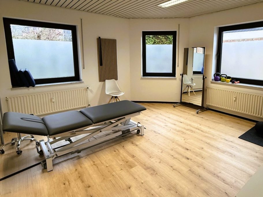 Unsere Praxis befindet sich zentral in Alsdorf, in unmittelbarer Nähe zur Burg Alsdorf. Die Behandlungen erfolgen in vier modernen, lichtdurchfluteten Therapieräumen, die jeweils individuell ausgestattet sind. So stellen wir sicher, dass für jede Patientin und jeden Patienten stets die optimalen Therapiematerialien zur Verfügung stehen. Sämtliche Behandlungsbänke sind elektrisch höhenverstellbar und ermöglichen eine ergonomische sowie komfortable Behandlung.